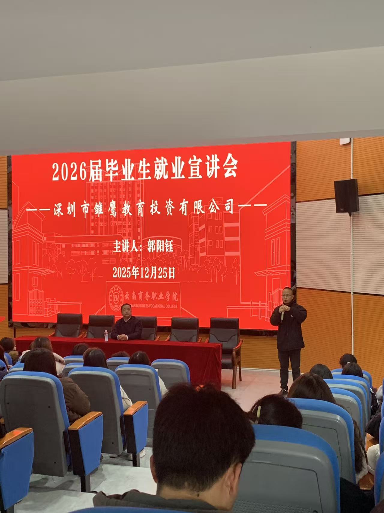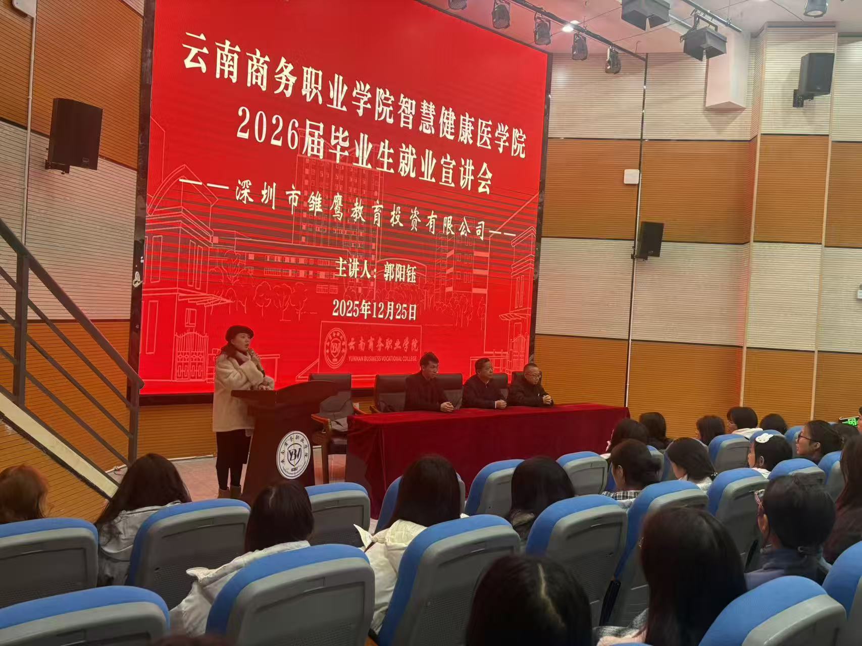 为全面贯彻学校“强化就业优先导向,深化产教融合”的工作部署要求,2025年12月25日,智慧健康医学院成功举办了深圳雏鹰教育投资集团专场就业宣讲会。