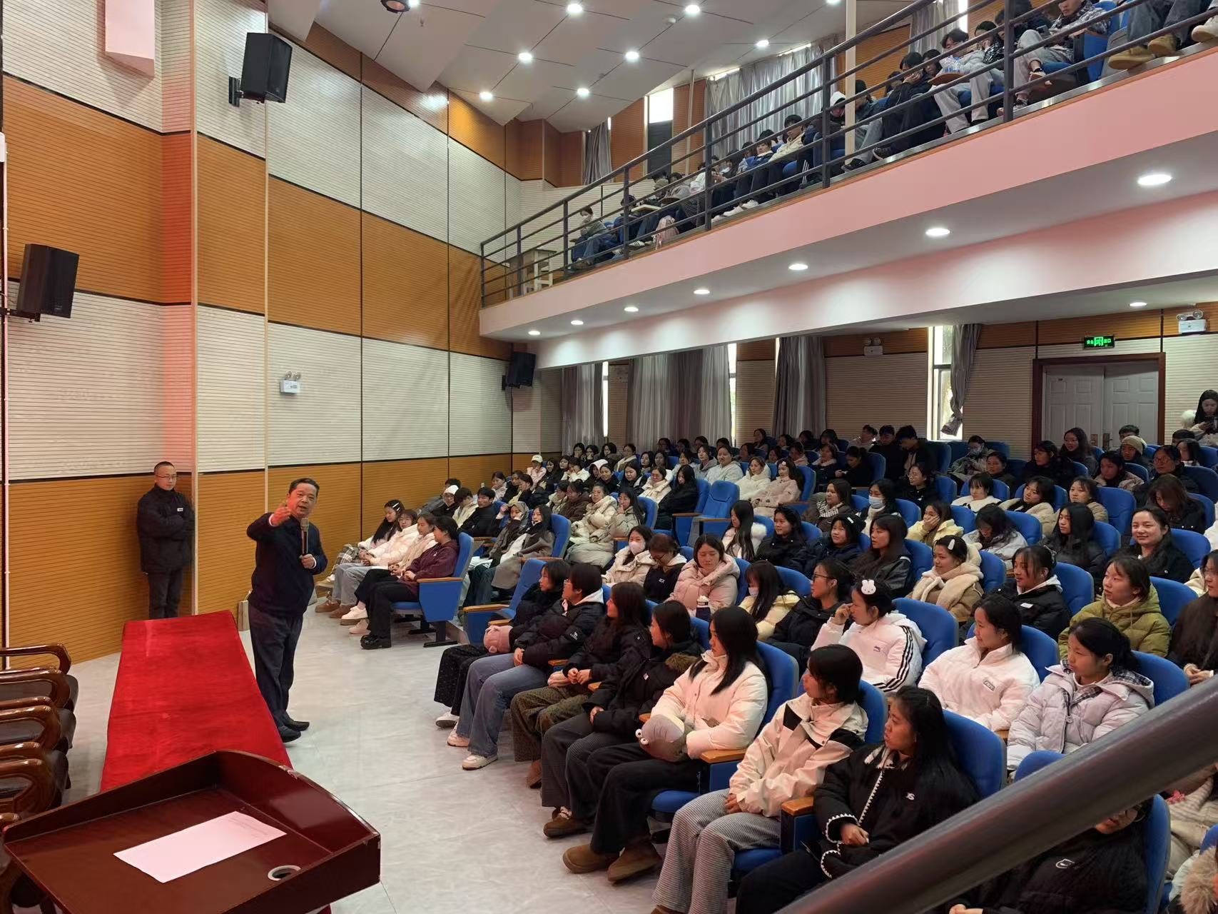在互动环节,学生们围绕职业发展等议题踊跃发言、深入探讨,气氛热烈。与此同时,在场教师与辅导员同步进行细致观察,精准捕捉学生的兴趣点与疑虑,为后续的个性化指导提供了直接依据。这一过程成功将宏观的就业信息传递,转化为学生内在的求职动力和清晰的个人行动思考。